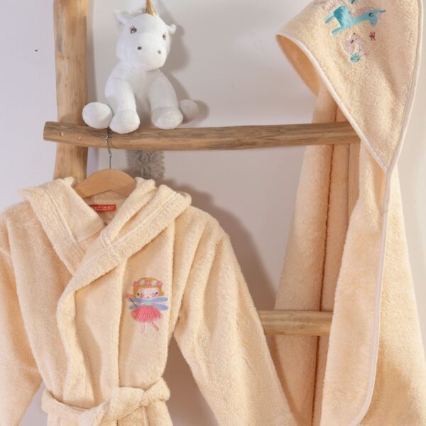 Παιδικό μπουρνούζι με κουκούλα, μονόχρωμο, με πολύ απαλή αίσθηση, που θα λατρέψει το παιδί σας. Είναι άριστης ποιότητας, με ύφασμα από 100% polyester fleece, βάρους 300gr/m2 και εξαιρετικά απορροφητικό.