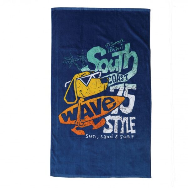 Παιδική πετσέτα θαλάσσης με κρόσσια, με ύφασμα από 100% βαμβάκι και πετσετέ η πίσω πλευρά της, διάστασης 70x120cm.